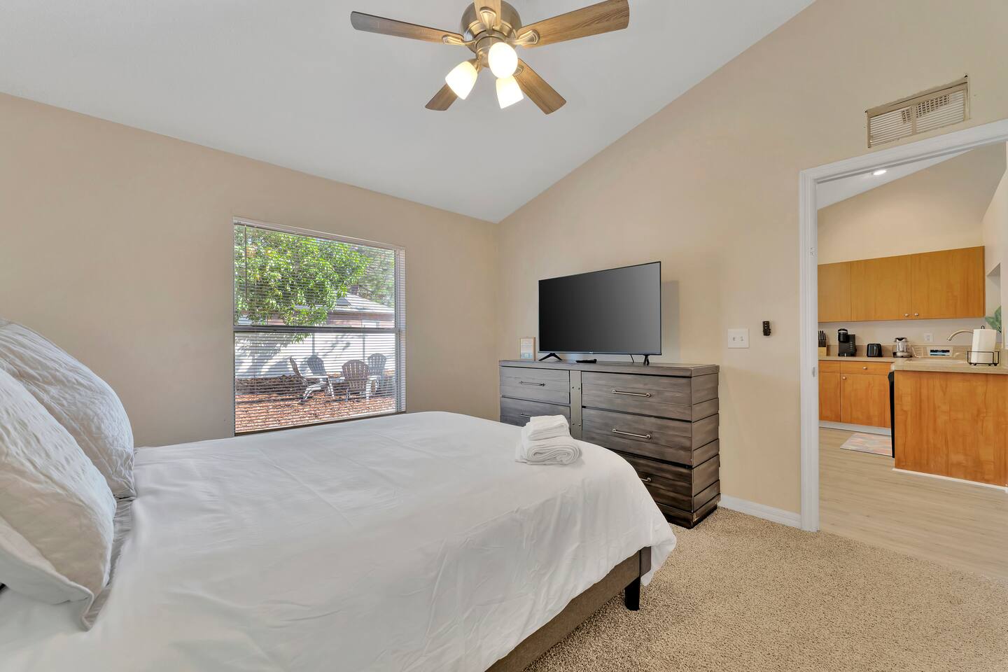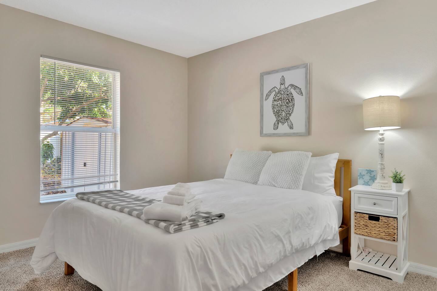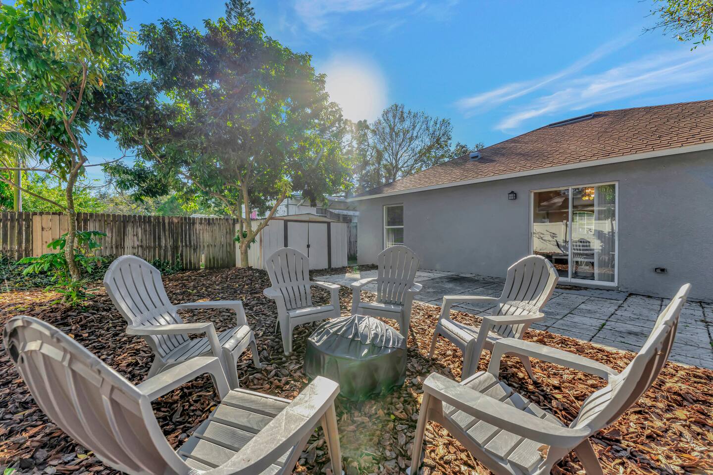 This spacious & affordable bungalow sits in a quiet neighborhood close to everything St. Pete has to offer! There are 3 bedrooms – each with queen beds and boho-inspired furnishings (sleeps 6). The master bedroom includes an ensuite with a jetted tub, while the two guest rooms share the hallway bathroom. This home has a great open layout with lots of stylish seating options in the living room. The kitchen comes completely stocked with everything you’ll need for your stay, plus there’s a pass-thru breakfast bar (seating for 2) that allows the cook to stay connected with everyone in the group. Just steps away, you’ll spend lots of time on the back patio – sitting around the firepit telling stories & making smores. The central location makes this place shine! You’ll be just 10 minutes from the area’s top-ranked beaches with access to the boardwalk and all kinds of fun activities along the waterfront. You’ll also be less than 15 minutes from Tropicana Field, the quaint historic district and all the nightlife, shopping & dining in downtown St. Petersburg. Tampa is just 30 minutes away, too!