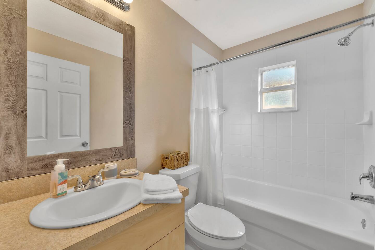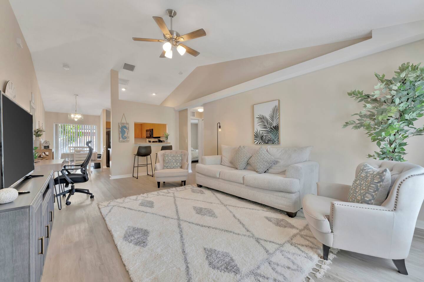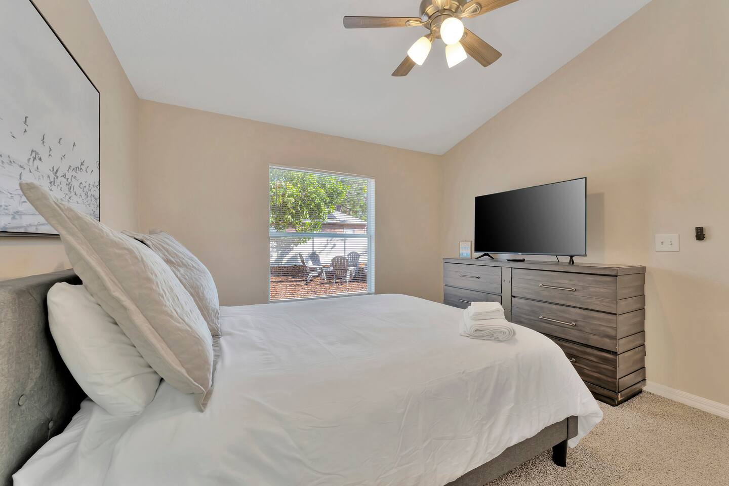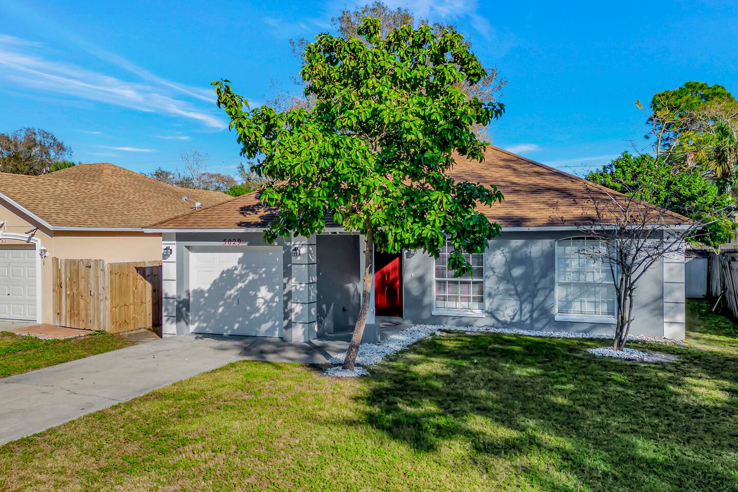 This spacious & affordable bungalow sits in a quiet neighborhood close to everything St. Pete has to offer! There are 3 bedrooms – each with queen beds and boho-inspired furnishings (sleeps 6). The master bedroom includes an ensuite with a jetted tub, while the two guest rooms share the hallway bathroom. This home has a great open layout with lots of stylish seating options in the living room. The kitchen comes completely stocked with everything you’ll need for your stay, plus there’s a pass-thru breakfast bar (seating for 2) that allows the cook to stay connected with everyone in the group. Just steps away, you’ll spend lots of time on the back patio – sitting around the firepit telling stories & making smores. The central location makes this place shine! You’ll be just 10 minutes from the area’s top-ranked beaches with access to the boardwalk and all kinds of fun activities along the waterfront. You’ll also be less than 15 minutes from Tropicana Field, the quaint historic district and all the nightlife, shopping & dining in downtown St. Petersburg. Tampa is just 30 minutes away, too!