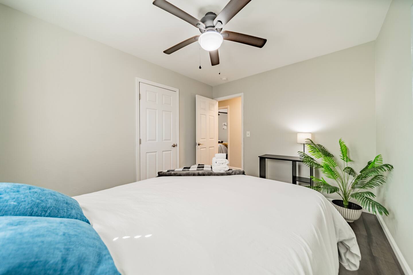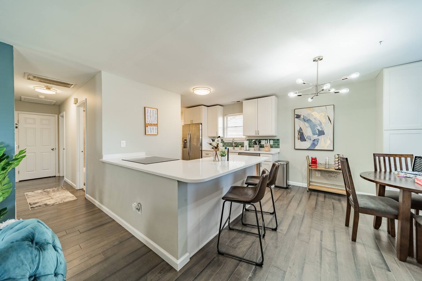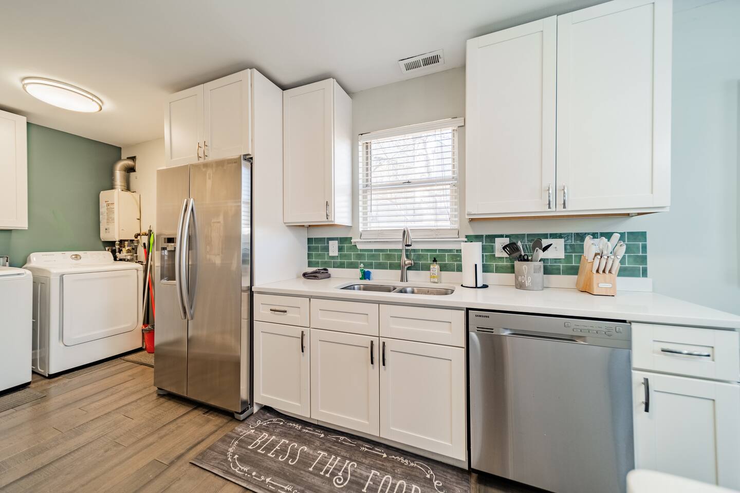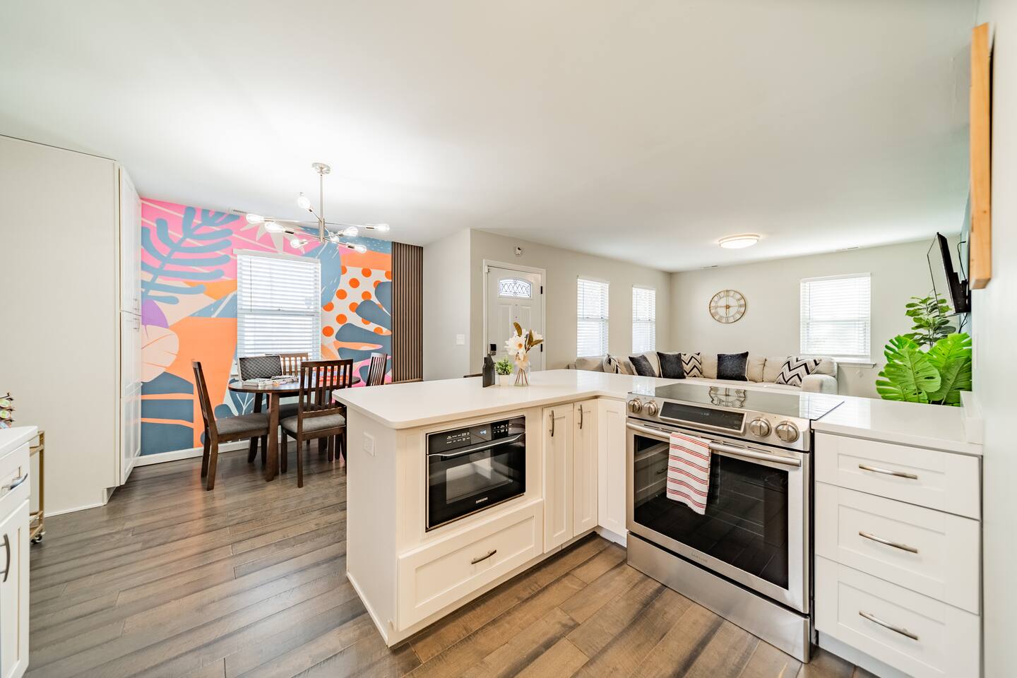This bungalow is ready to host your next get-together in Charlotte! Step inside from the cute front porch to find an open-concept living/kitchen/dining area with hardwood floors, lots of natural light and plenty of space for everyone to spread out. This 1000+ sq. ft home has 3 bedrooms and 1 bathroom and is completely yours for your entire stay Bedroom 1: Queen Bed | Bedroom 2: Queen Bed | Bedroom 3: Queen Bed LIVING ROOM • 50" 4K Smart TV • Comfortable sectional for up to 6 guests BEDROOM 1 • 55" 4K Smart TV • Queen Bed • Memory foam mattress • 1800 thread count bed linen • Custom closet space BEDROOM 2 • 55" 4K Smart TV • Queen Bed • Memory foam mattress • 1800 thread count bed linen • Closet with hangers BEDROOM 2 • Queen Bed • Memory foam mattress • 1800 thread count bed linen • Closet with hangers • Iron & ironing board KITCHEN AND DINING • Fully equipped w/ Samsung stainless steel appliances • Microwave, oven and dishwasher • Dining table and counter seating • Coffee Dispenser w/ starter K-Cups • Basic cooking supplies LAUNDRY AREA • Samsung washer & dryer LOCATION • The bungalow sits across the street from Cordelia Park, which includes a winding creek, greenway paths and a community pool. • No car? No problem! You’ll be able to walk to Optimist Hall, which is filled with food & drink options, and the light rail stop is at the end of the block.