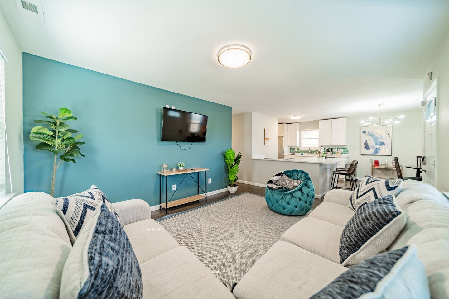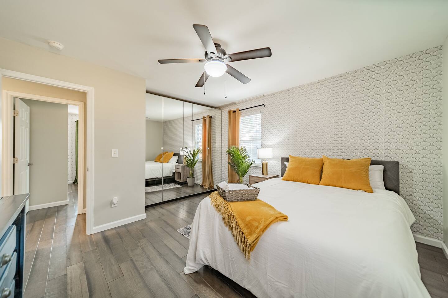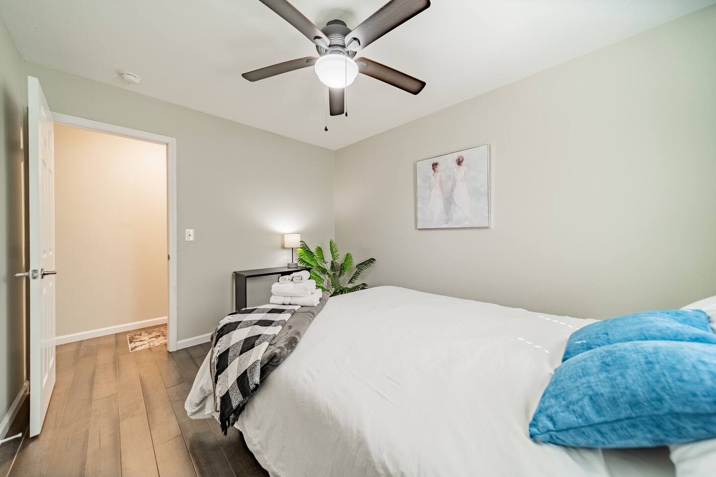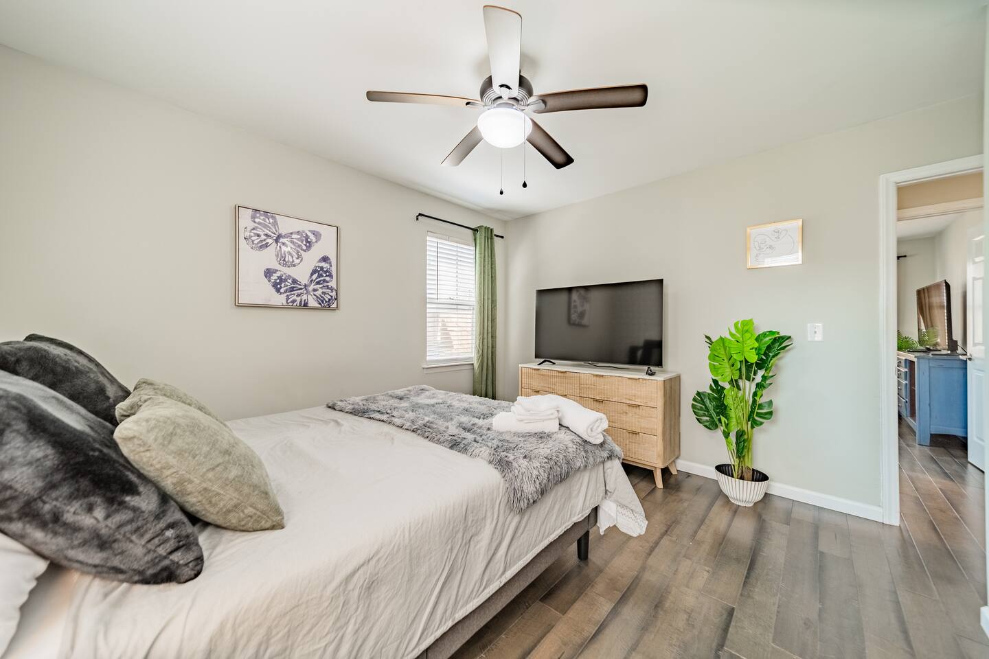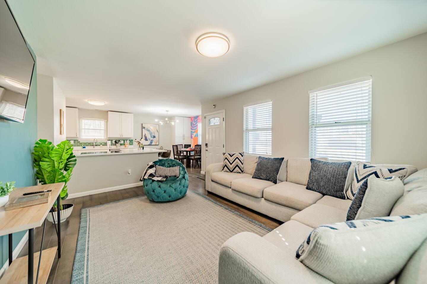 This bungalow is ready to host your next get-together in Charlotte! Step inside from the cute front porch to find an open-concept living/kitchen/dining area with hardwood floors, lots of natural light and plenty of space for everyone to spread out. This 1000+ sq. ft home has 3 bedrooms and 1 bathroom and is completely yours for your entire stay Bedroom 1: Queen Bed | Bedroom 2: Queen Bed | Bedroom 3: Queen Bed LIVING ROOM • 50" 4K Smart TV • Comfortable sectional for up to 6 guests BEDROOM 1 • 55" 4K Smart TV • Queen Bed • Memory foam mattress • 1800 thread count bed linen • Custom closet space BEDROOM 2 • 55" 4K Smart TV • Queen Bed • Memory foam mattress • 1800 thread count bed linen • Closet with hangers BEDROOM 2 • Queen Bed • Memory foam mattress • 1800 thread count bed linen • Closet with hangers • Iron & ironing board KITCHEN AND DINING • Fully equipped w/ Samsung stainless steel appliances • Microwave, oven and dishwasher • Dining table and counter seating • Coffee Dispenser w/ starter K-Cups • Basic cooking supplies LAUNDRY AREA • Samsung washer & dryer LOCATION • The bungalow sits across the street from Cordelia Park, which includes a winding creek, greenway paths and a community pool. • No car? No problem! You’ll be able to walk to Optimist Hall, which is filled with food & drink options, and the light rail stop is at the end of the block.